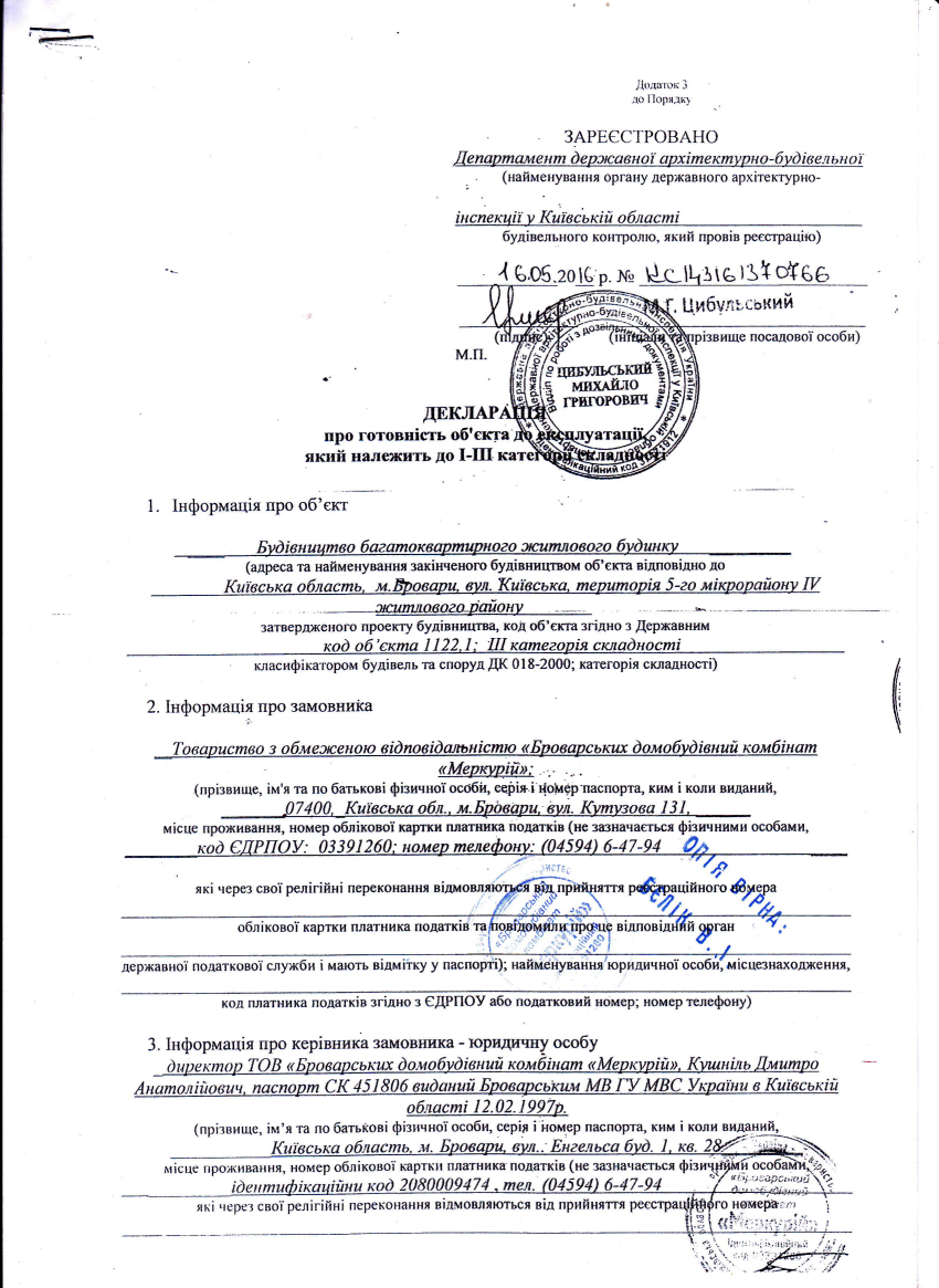 Декларація про готовність об'єкта до експлуатації, який належить до І-ІІІ категорії складності